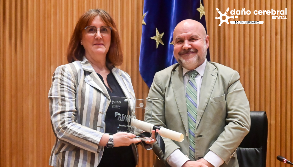 El acto incluyó la entrega del Premio Especial cermi.es 2025 a Daño Cerebral Estatal por su 30 aniversario, que fue otorgado por el presidente del Comité Español de Representantes de Personas con Discapacidad (Cermi), Luis Cayo Pérez Bueno, y su directora ejecutiva, Pilar Villarino.