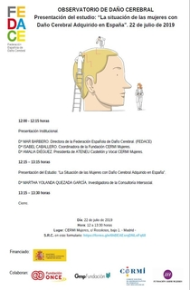 La Federación Española de Daño Cerebral (FEDACE) presenta el próximo 22 de julio un nuevo informe publicado sobre "La situación de las mujeres con Daño Cerebral Adquirido en España". El acto tendrá lugar en el espacio CERMI Mujeres, de Madrid, y contará con la presencia de Isabel Caballero, coordinadora de CERMI Mujeres; Amalia Diéguez, presidenta de Ateneu Castellón y vocal de CERMI Mujeres; y Mar Barbero, directora-gerente de FEDACE.